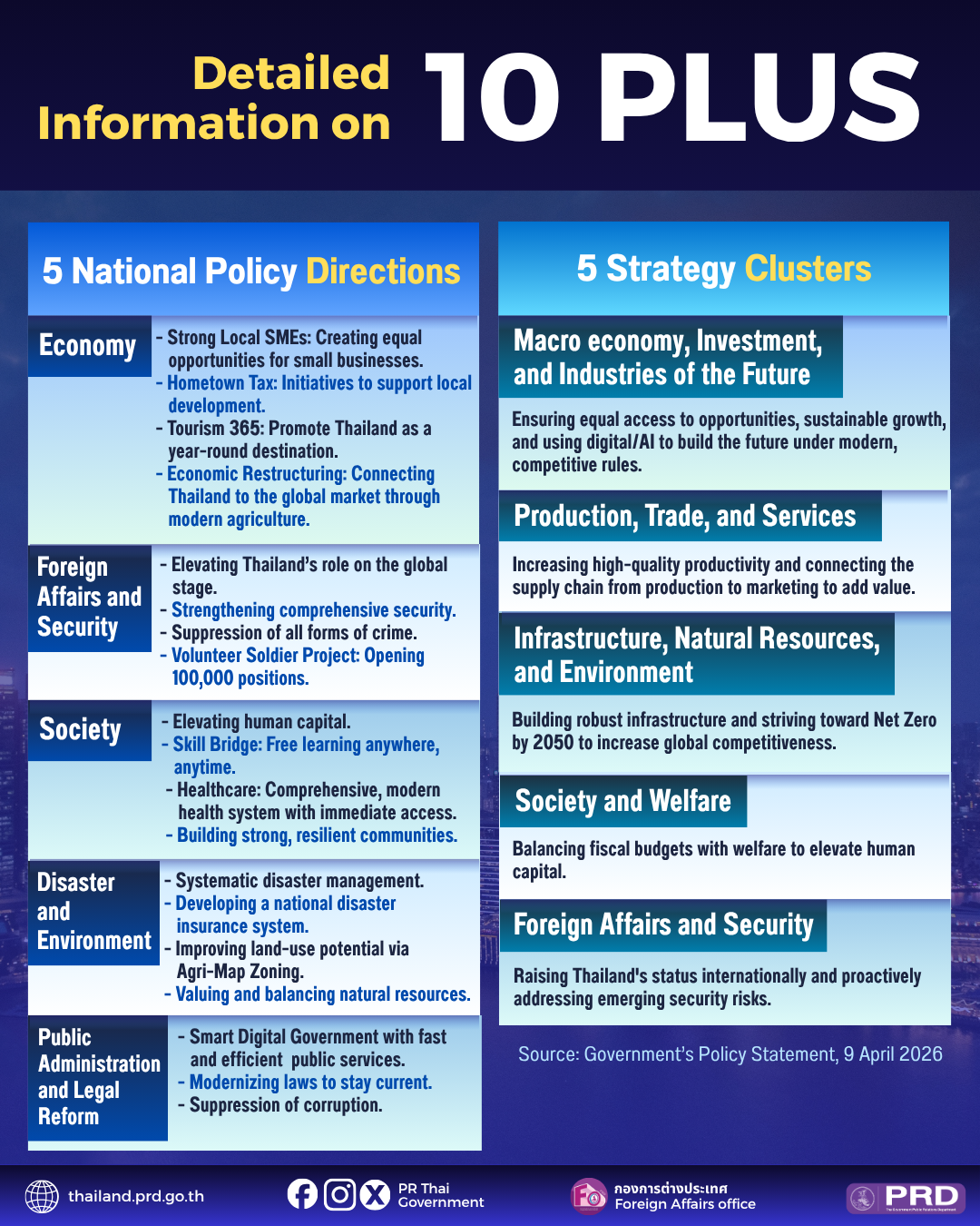 Exploring Thailand's New Government Policy "10 Plus" as stated at the Government Policy Statement on 9 April 2026.