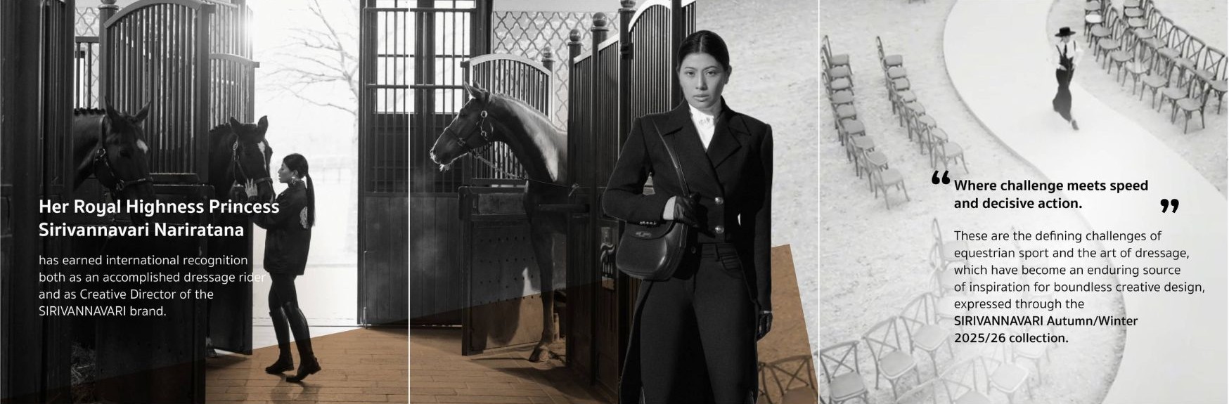 Well recognized as a skilled equestrian rider in dressage events, Her Royal Highness Princess Sirivannavari Nariratana Rajakanya, Creative Director of the SIRIVANNAVARI brand, has presented her latest collection, featuring a combination of equestrian sport designs and the new era of the urban lifestyle. The collection reflects Her Royal Highness’s ingenuity in perfectly blending fashion art with the charms of equestrian sports.