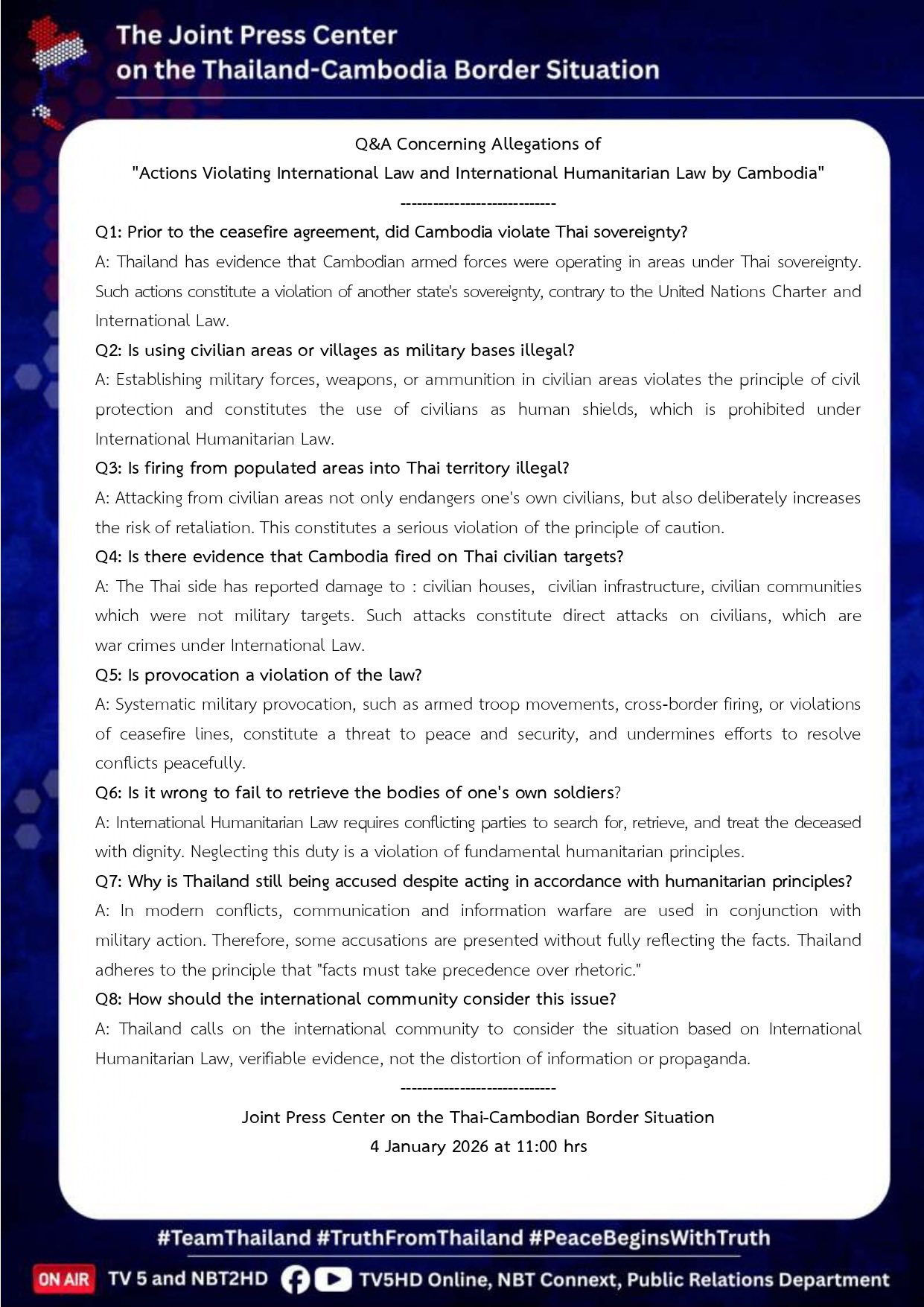 Q&A : Concerning Allegations of "Actions Violating International Law and International Humanitarian Law by Cambodia"