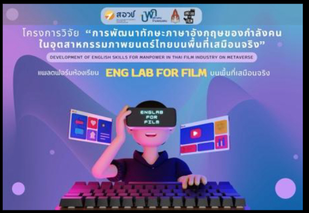 2. จุด ที่ 2 Metaverse & English Learning for Thai Film Industry เป็นนวัตกรรม ที่ให้ ผู้เข้าเยี่ยมชมนิทรรศการ ได้ทดลอง ฝึกทักษะ ภาษาอังกฤษ ผ่าน Metaverse จำลอง