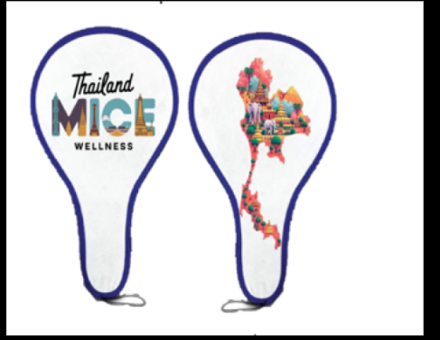 2. จัดเตรียมของที่ระลึกให้แก่ผู้สนใจเข้าชมนิทรรศการชั่วคราว พัดสกรีนลายอัตลักษณ์ความเป็นไทย มี Key Visual Thailand’s MICE Wellness และโลโก้แบรนด์ไมซ์ประเทศไทย Thailand MICE และ TCEB